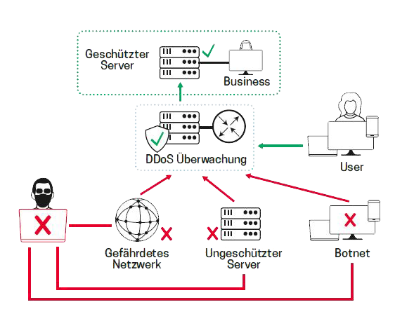 Der Kunde erhält umfassenden Netzwerk-(Server-)Schutz gegen DDoS-Angriffe. Der Service umfasst nicht nur Kanalschutz, sondern auch den Schutz von Online-Services unabhängig von den verwendeten Protokollen.